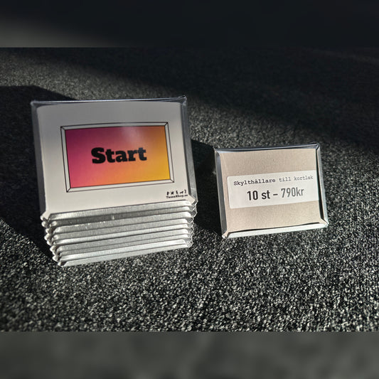 TassaShop.se är störst i norden på skylthållare i aluminium för just rallylydnad! Vi säljer skylthållare i 4 olika storlekar. A4-format är såklart godkända för tävling. Alla storlekar är dubbelsidiga så du kan sätta skylt på båda sidorna.